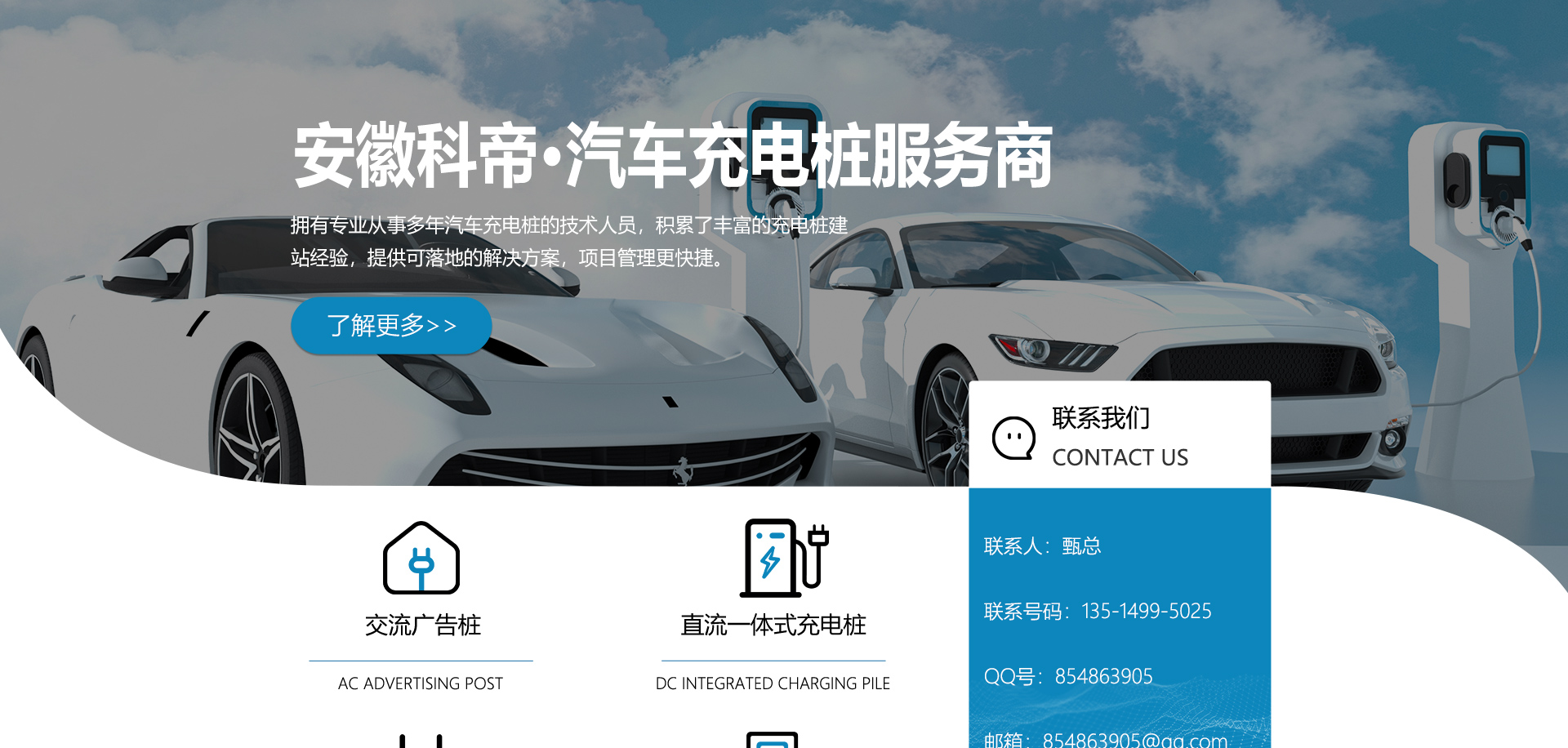關(guān)于我們安徽科帝新能源科技有限公司坐落于安徽省會(huì)-合肥,是一家研發(fā)、生產(chǎn)智能充電樁設(shè)備,汽車充電站后臺(tái)監(jiān)控管理系統(tǒng)和生產(chǎn)高壓開(kāi)關(guān)設(shè)備的企業(yè).由專門的研發(fā)團(tuán)隊(duì)、管理團(tuán)隊(duì)按照現(xiàn)代化企業(yè)制度規(guī)范設(shè)立的有限責(zé)任公司。致力于為能源智能、安全的應(yīng)用和節(jié)能減排提供整體的技術(shù)與產(chǎn)品解決方案??频奂邪l(fā)、設(shè)計(jì)、生產(chǎn)、銷售以及服務(wù)于一體,在電動(dòng)汽車充電方案,充電設(shè)施建設(shè)和城市配電方面擁有廣泛的技術(shù)研究及經(jīng)驗(yàn)積累,為客戶提供安全、智能的充電設(shè)備及充電運(yùn)營(yíng)站建設(shè)一體化解決方案。并堅(jiān)持以人為本、質(zhì)量為先、顧客至上、不斷創(chuàng)新”的企業(yè)理念,為能源行業(yè)的發(fā)展、節(jié)能減排做出重大的貢獻(xiàn)。公司擁有豐富的產(chǎn)品種類,目前科帝已研發(fā)生產(chǎn)了三十多種產(chǎn)品,充電設(shè)備有直流一體式充電樁、直流分體式充電樁、直流廣告樁、交流廣告樁、廣告一體樁、壁掛交直流樁;等多種充電設(shè)備;每一款產(chǎn)品都是精心打造,力求為客戶提供優(yōu)越的用戶體驗(yàn)。展望未來(lái)科帝將通過(guò)持續(xù)的自...